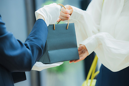 「ひとまず資料だけ欲しい」という顧客に対しては、資料をそのまま手渡すよりも、社名のロゴが入ったファイルや紙袋などに入れた方が好印象です。ただ資料を渡す場合に比べて丁寧な印象を与え、その後の成約につながりやすくなります。
