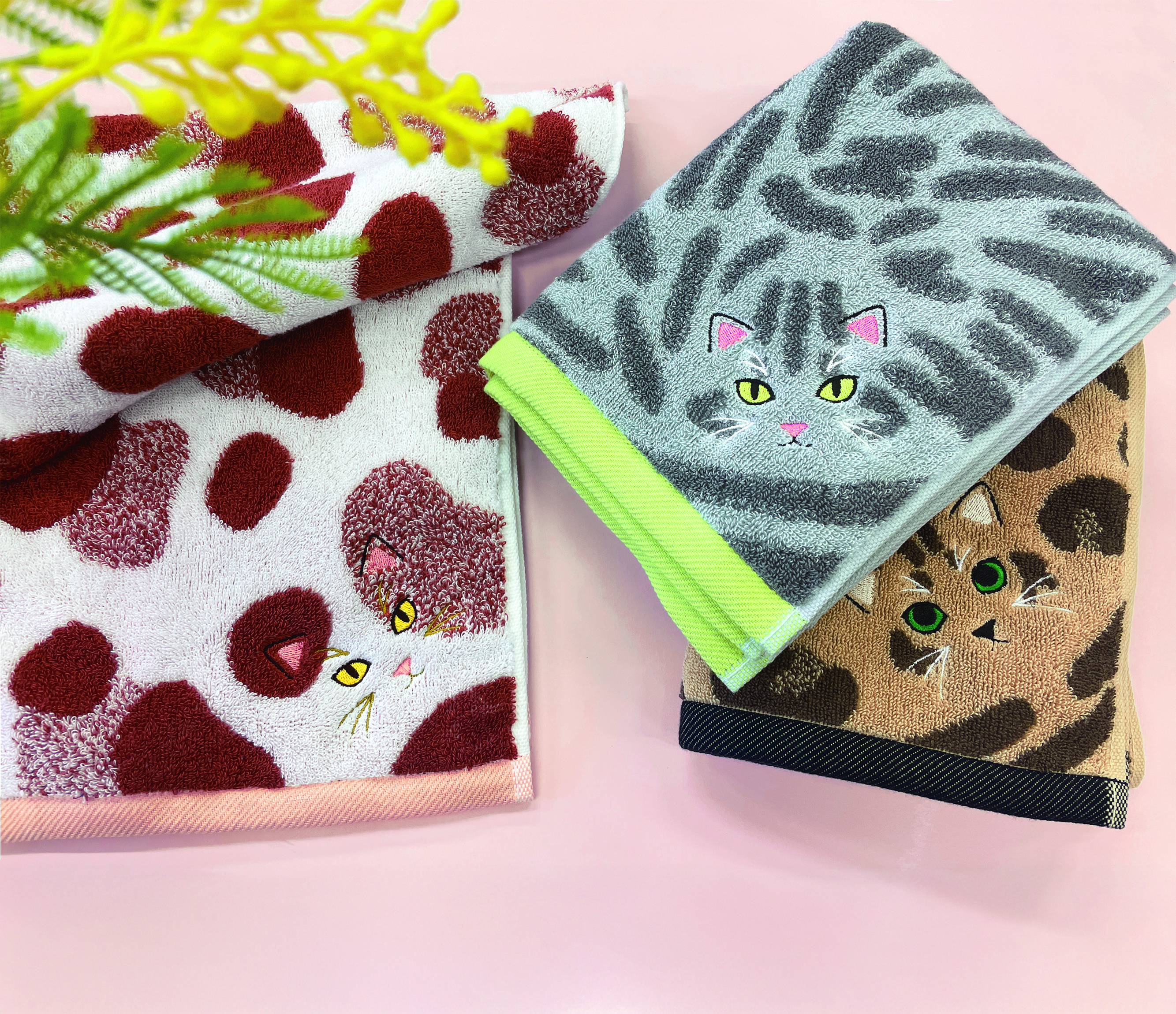 猫の毛並みを猫の種類ごとにリアル再現したハンカチ・タオル。